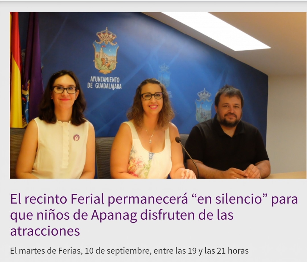 Otra buena noticia nos llega hoy desde el Ayuntamiento de Guadalajara. El martes 10 de septiembre de 19:00 a 21:00 horas el recinto ferial de Guadalajara permanecerá sin luces ni sonidos para que las personas con TEA💙 puedan disfrutar de las atracciones. Gracias a nuestro alcalde Alberto Rojo, la concejala responsable de festejos Sara Simón y a todo su equipo de gobierno por este gran gesto.