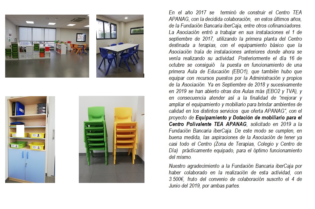 Desde APANAG queremos agradecer a Fundación Ibercaja por su donación a nuestra asociación que ha permitido que podamos equipar de mobiliario para el Centro Polivalente TEA APANAG .💙